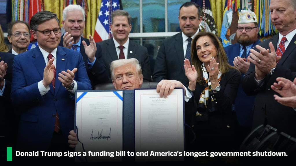 The longest government shutdown in US history ended on Wednesday after more than 42 days, after the House of Representatives passed a bill negotiated by a Republican and a separate group of pro-Democrat senators.