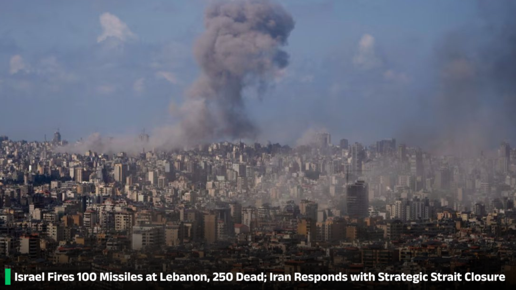 Israel Fires 100 Missiles at Lebanon, Killing 250; Iran Responds by Closing the Strait of Hormuz