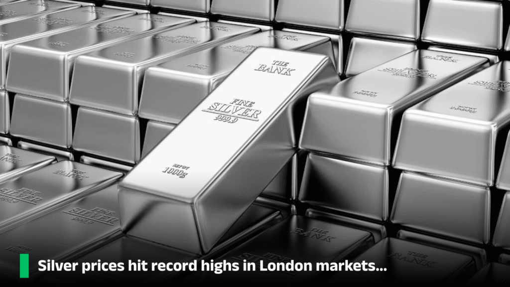 Silver prices touched an all-time high near $53 an ounce, as a historic short squeeze in London fueled the rally as demand for safe-haven assets surged.