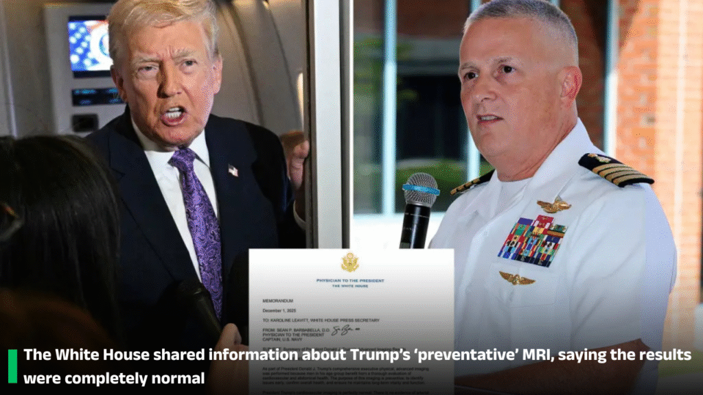 The White House on Monday released detailed medical findings from US President Donald Trump’s physician, confirming that an MRI performed during his October checkup showed no abnormalities and was done only as a precaution.