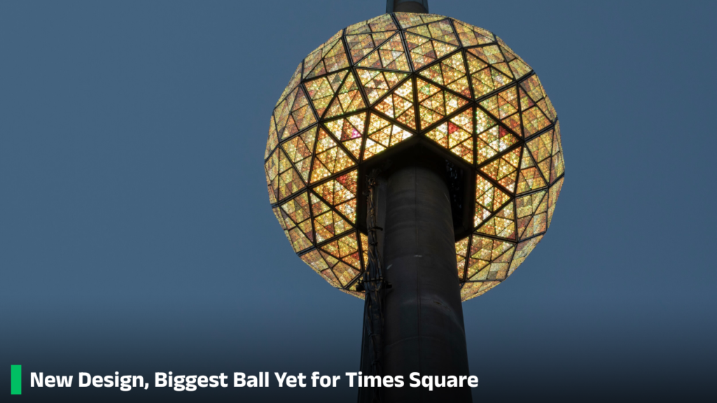 Times Square will ring in the New Year with a newly designed ball, marking its biggest version to date